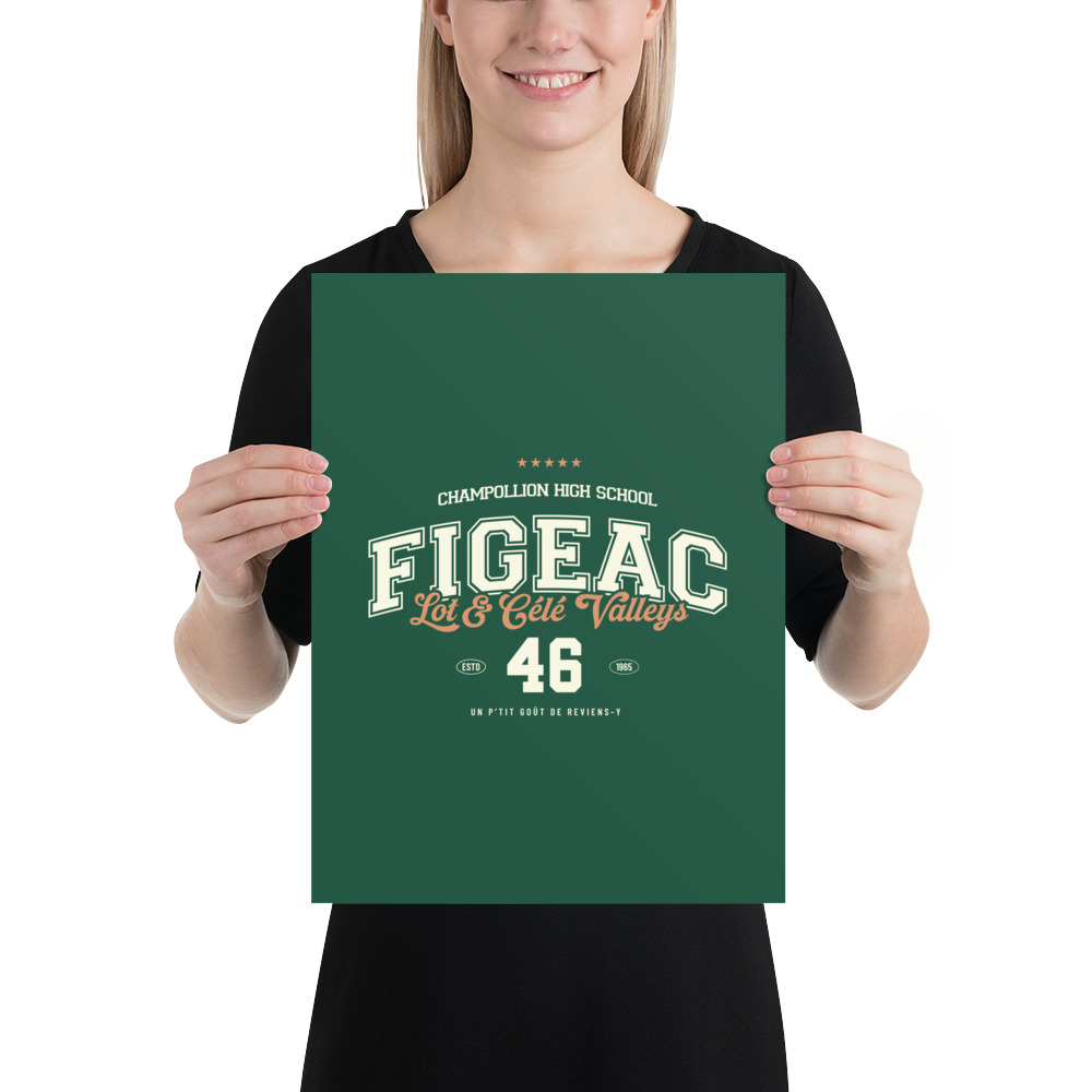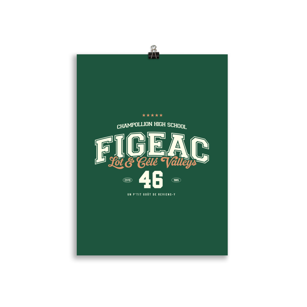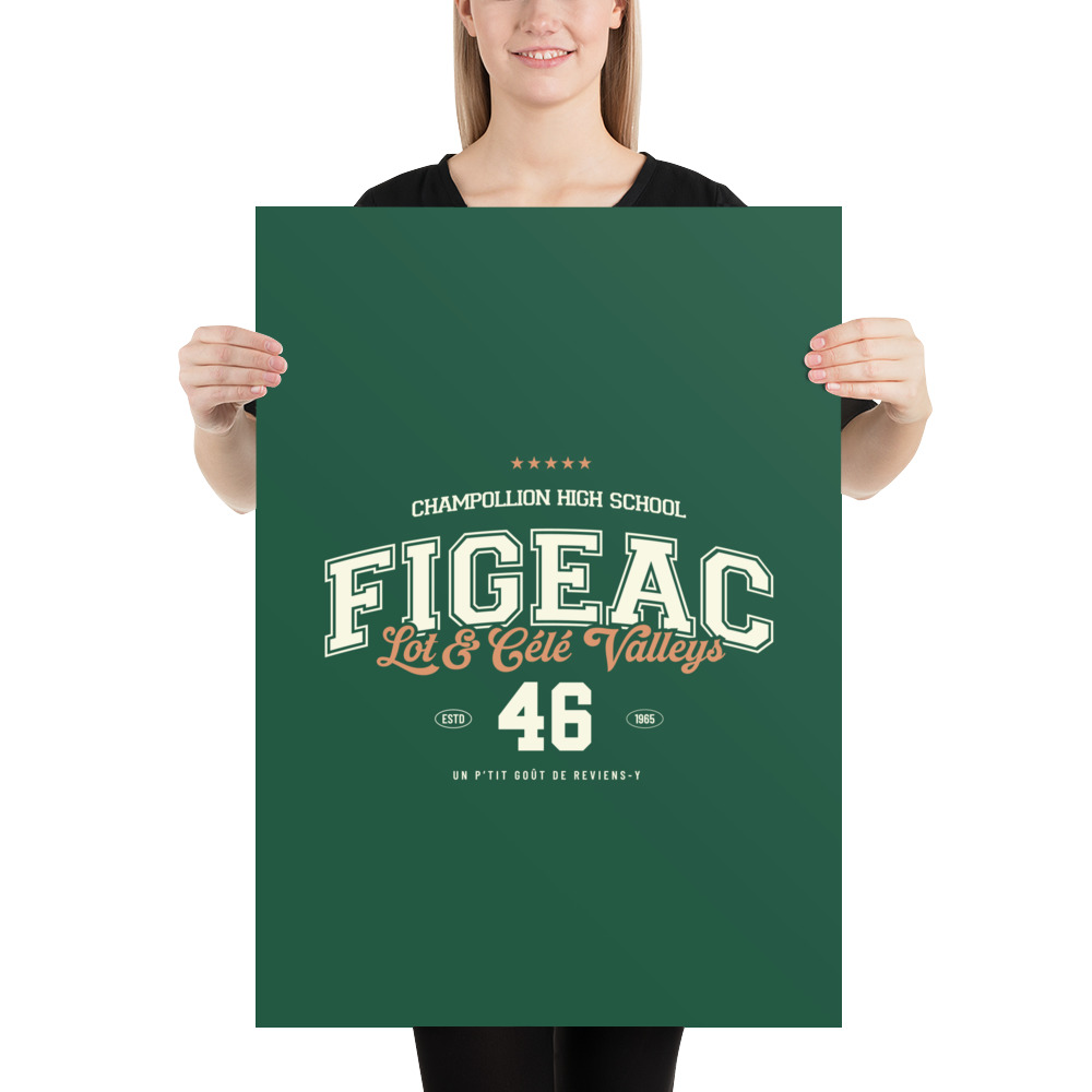 Affichez votre fierté lotoise avec ce design rétro type college de Figeac (46). Célébrant le lycée Champollion et les superbes Vallées du Lot et du Célé, ce visuel vintage en vert et pêche est parfait pour un t-shirt ou un sweat souvenir. Un design intemporel avec l’année d’établissement 1965 et la phrase culte : ‘Un p’tit goût de reviens-y’. Idéal pour les passionnés d’histoire locale et les amoureux de la région.