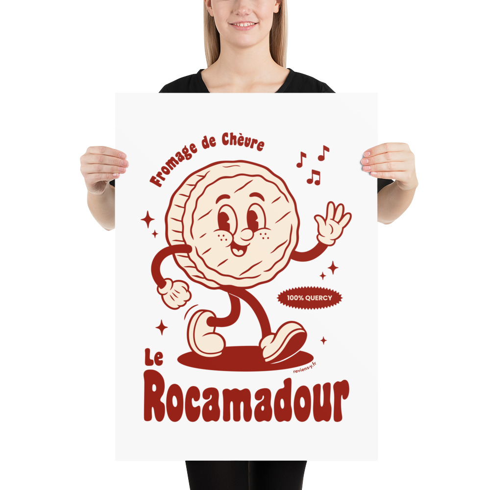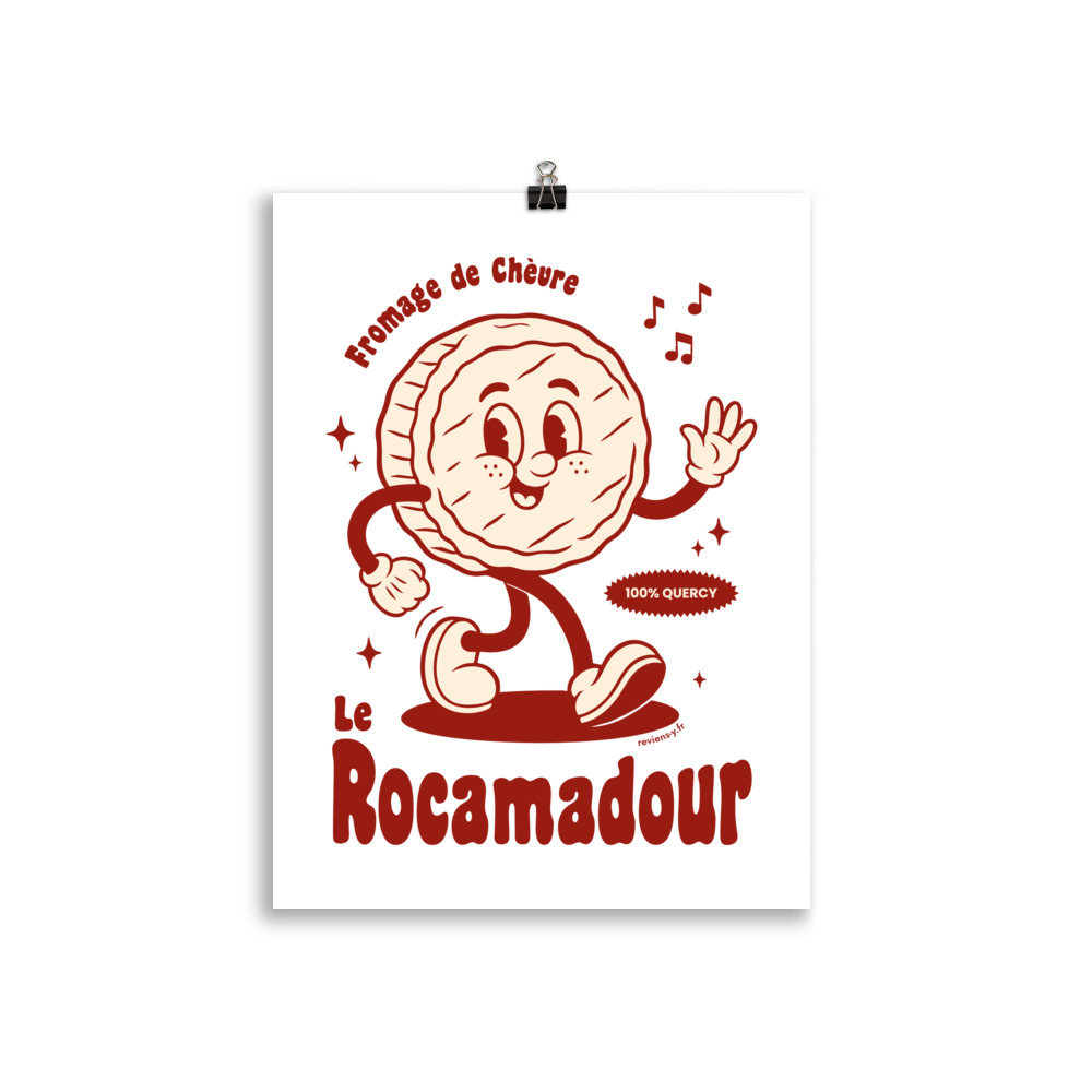 Symbole gourmand du Lot, ce visuel met à l’honneur le célèbre fromage de chèvre Rocamadour AOP. Représenté sous les traits d’un personnage joyeux, il incarne la convivialité et l’authenticité du Quercy. Un clin d’œil graphique plein de bonne humeur, à l’image du terroir occitan.