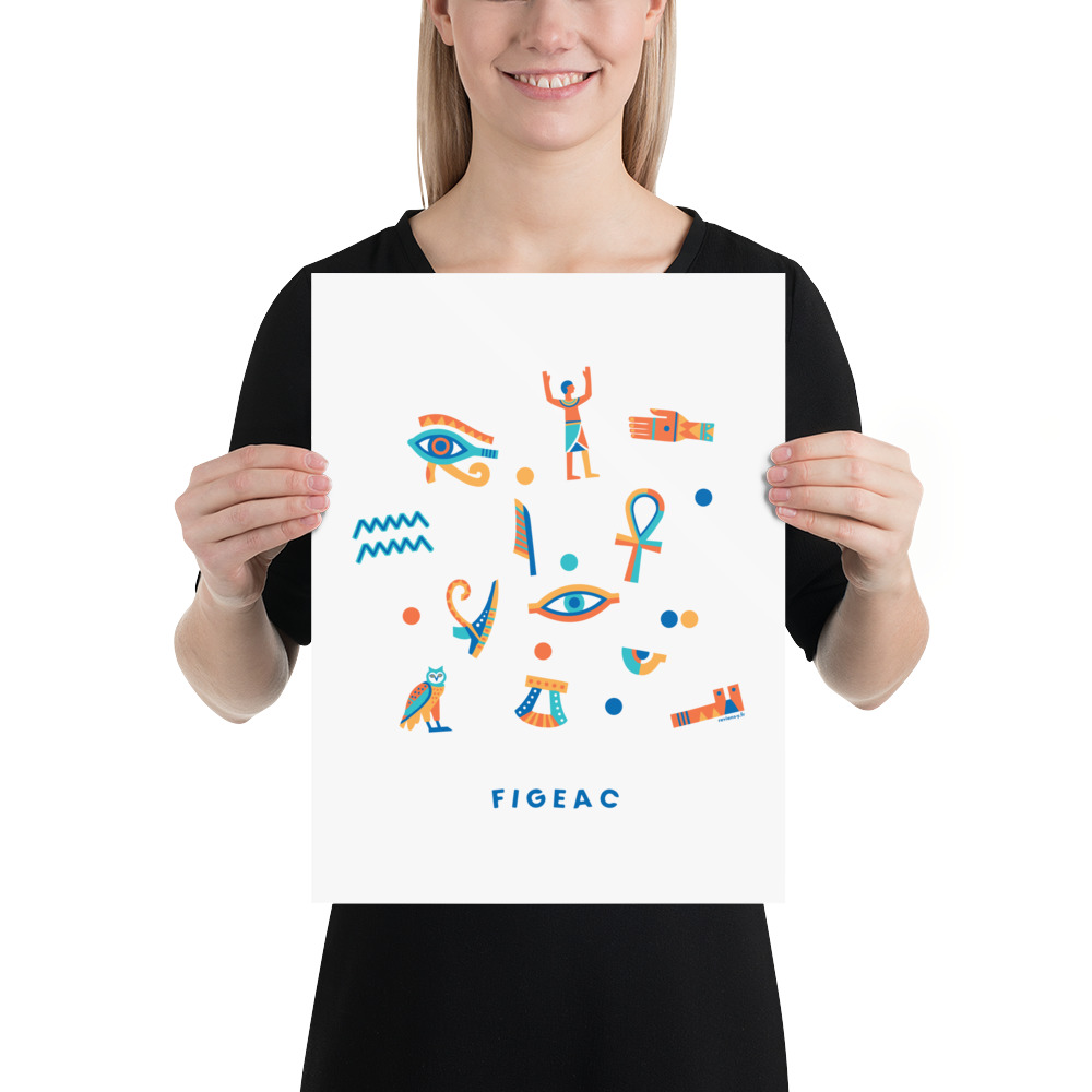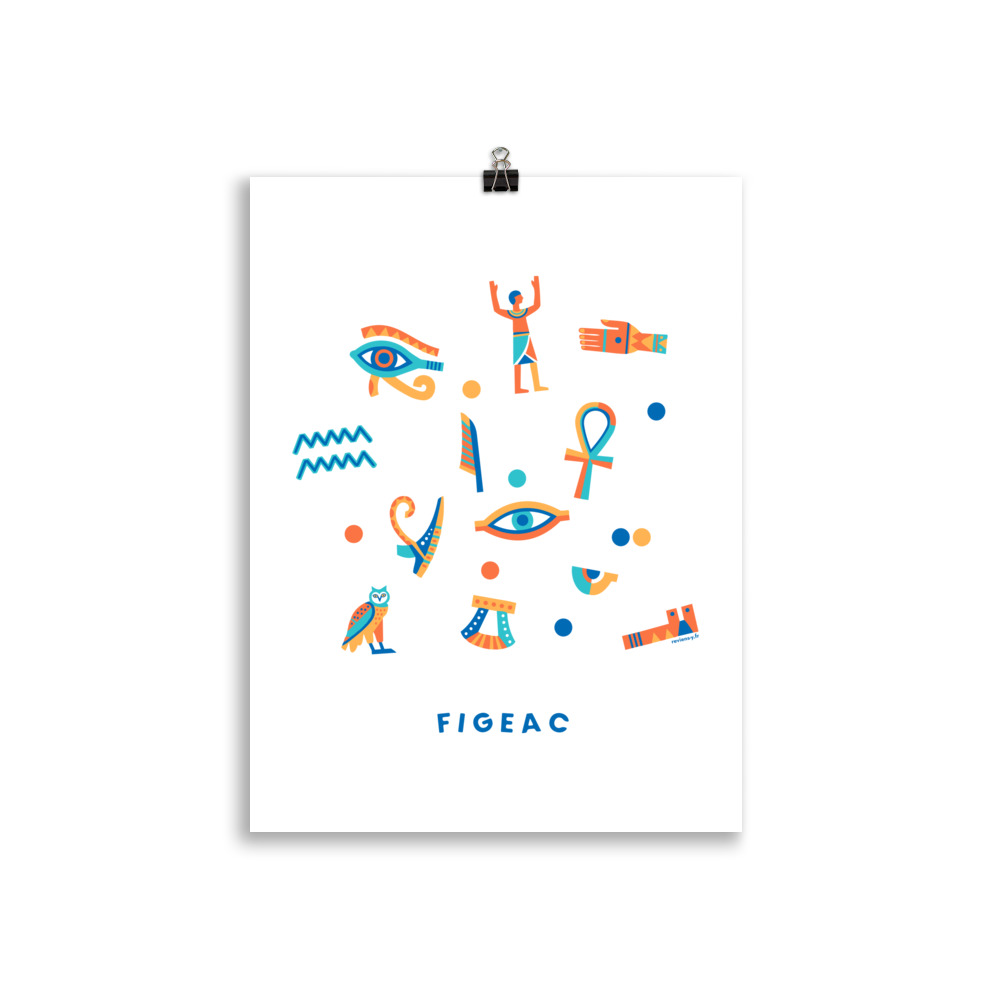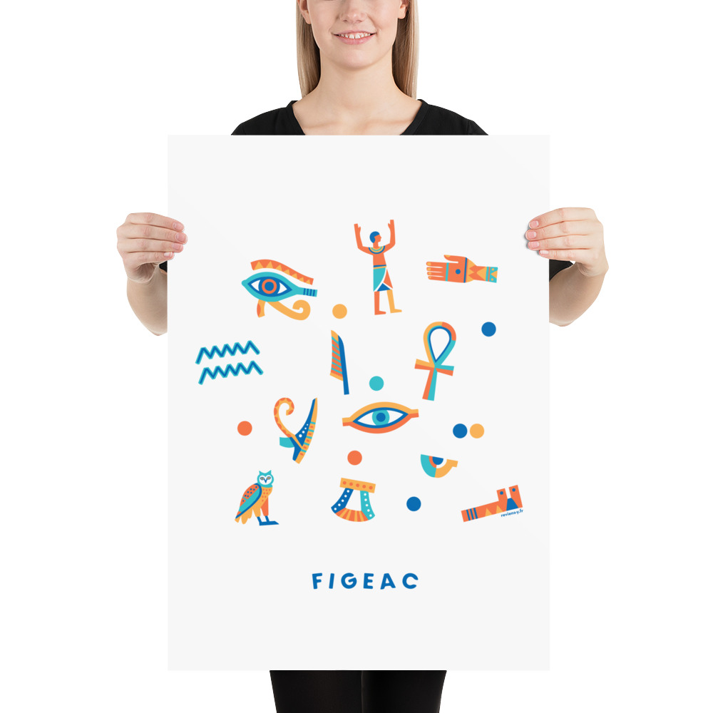 Composition graphique inspirée des hiéroglyphes de Figeac, en référence à Champollion et à son lien avec la ville. Les symboles et formes stylisées évoquent l’écriture égyptienne à travers une interprétation contemporaine, ancrée dans l’histoire et le patrimoine du Lot.