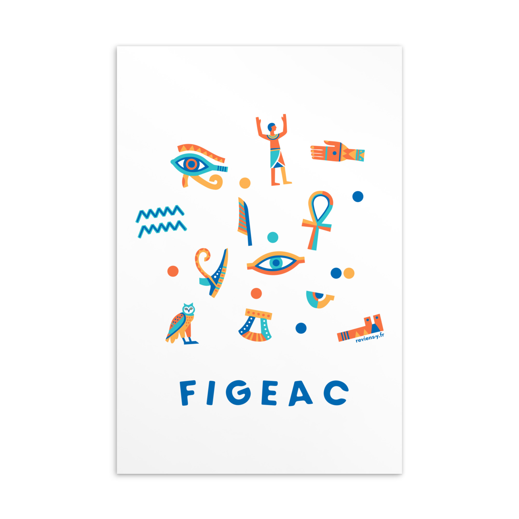 Composition graphique inspirée des hiéroglyphes de Figeac, en référence à Champollion et à son lien avec la ville. Les symboles et formes stylisées évoquent l’écriture égyptienne à travers une interprétation contemporaine, ancrée dans l’histoire et le patrimoine du Lot.