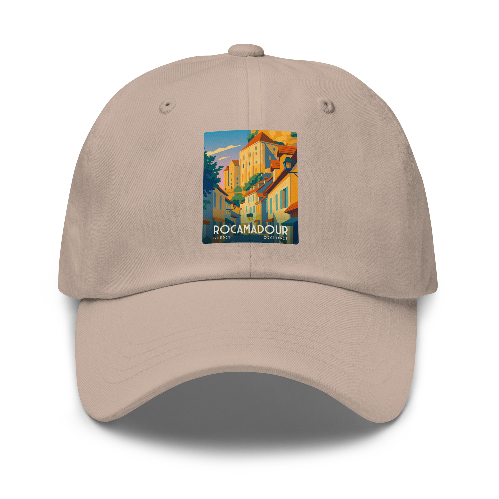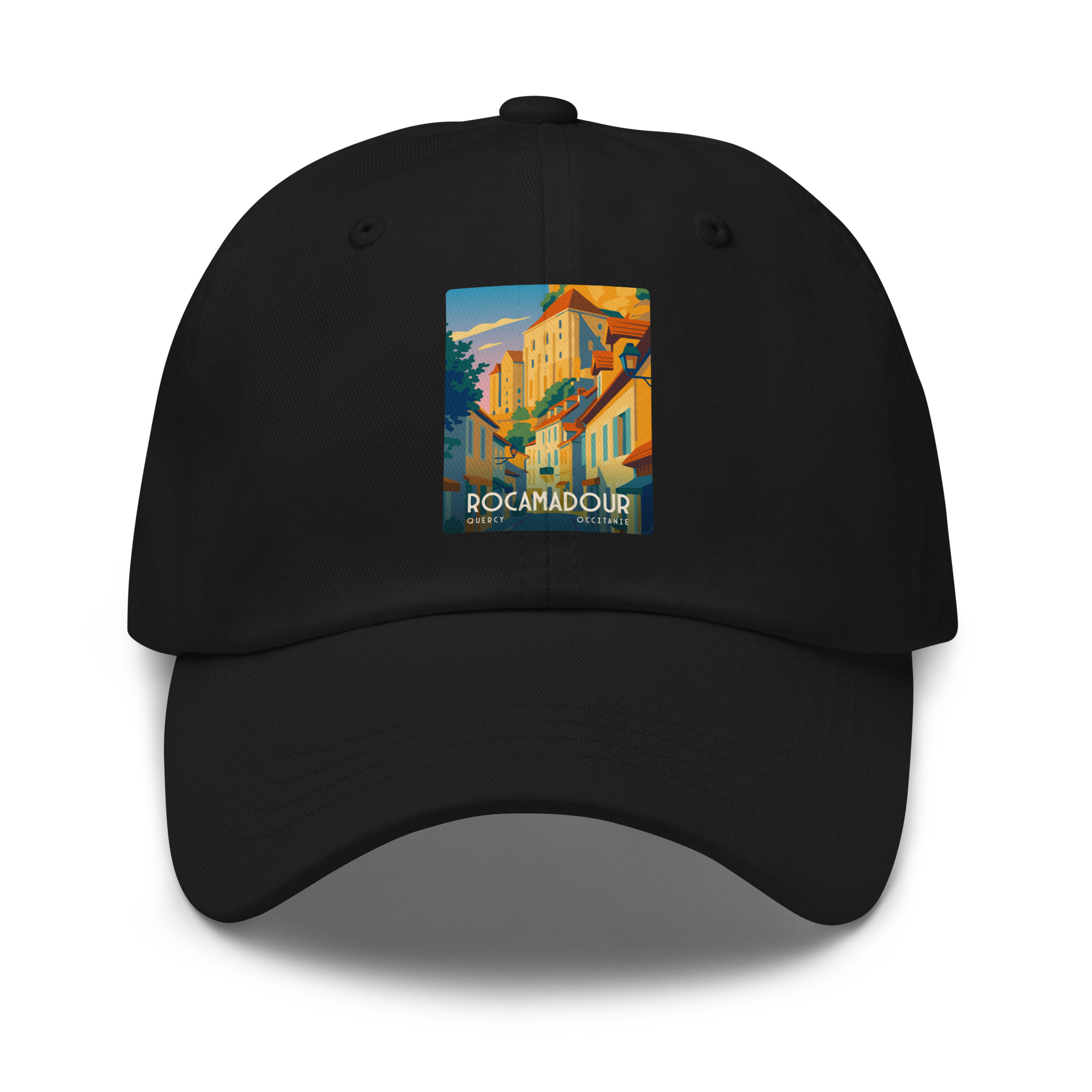 Ce visuel capture l’atmosphère ensoleillée des ruelles de Rocamadour, au cœur du Quercy. Les façades dorées et les toits ocres reflètent la chaleur du Sud-Ouest, tandis que la lumière du soir sublime les pierres typiques du Lot.
