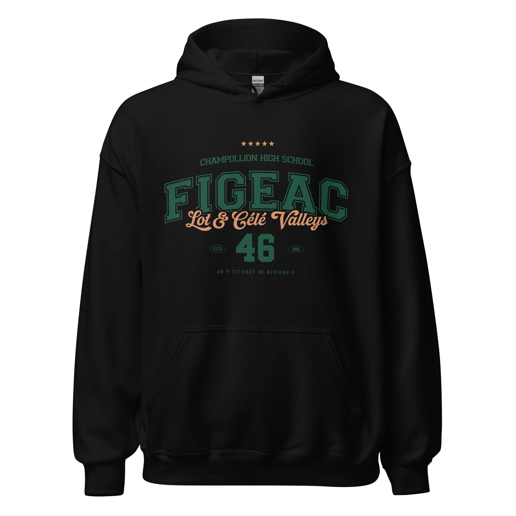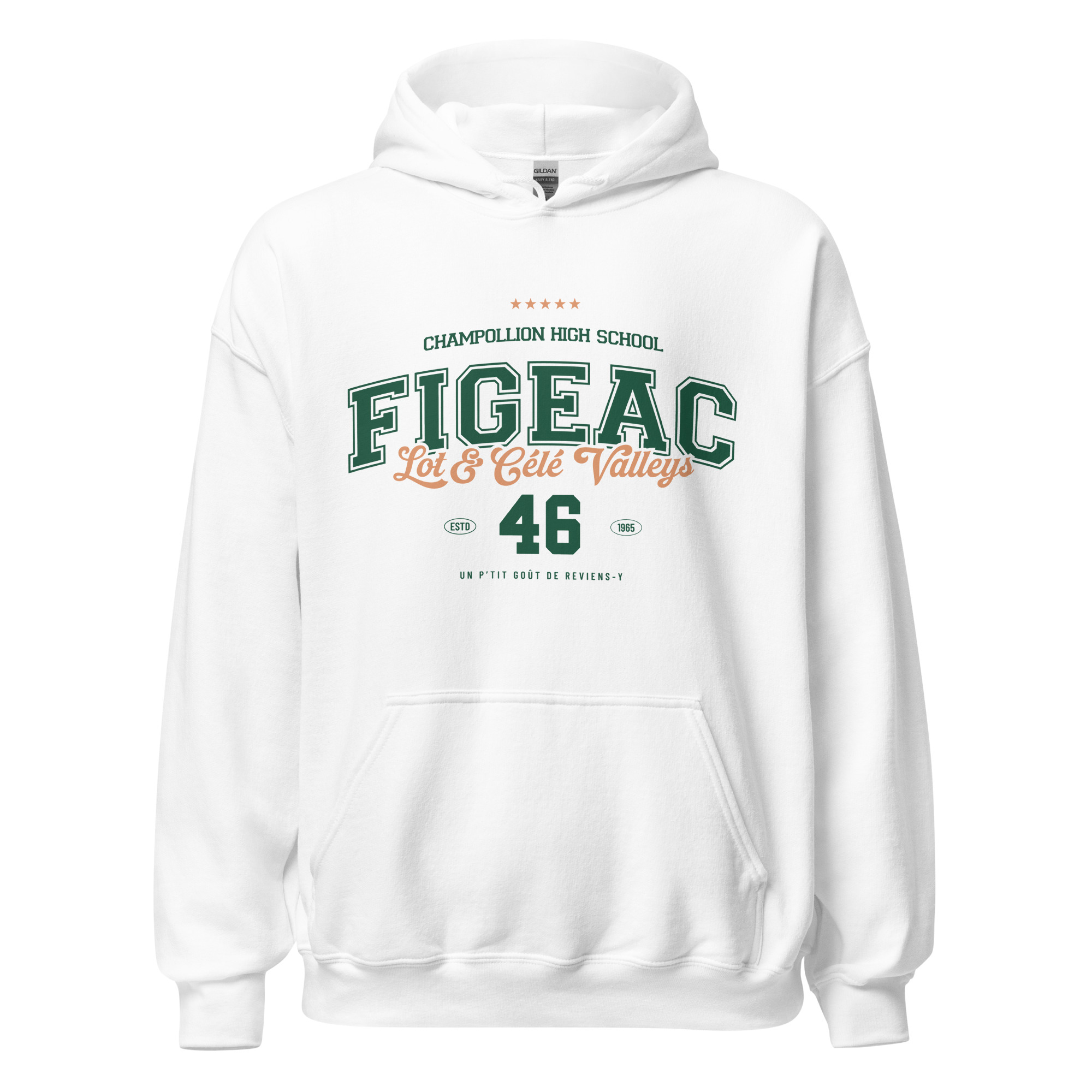 Affichez votre fierté lotoise avec ce design rétro type college de Figeac (46). Célébrant le lycée Champollion et les superbes Vallées du Lot et du Célé, ce visuel vintage en vert et pêche est parfait pour un t-shirt ou un sweat souvenir. Un design intemporel avec l’année d’établissement 1965 et la phrase culte : ‘Un p’tit goût de reviens-y’. Idéal pour les passionnés d’histoire locale et les amoureux de la région.
