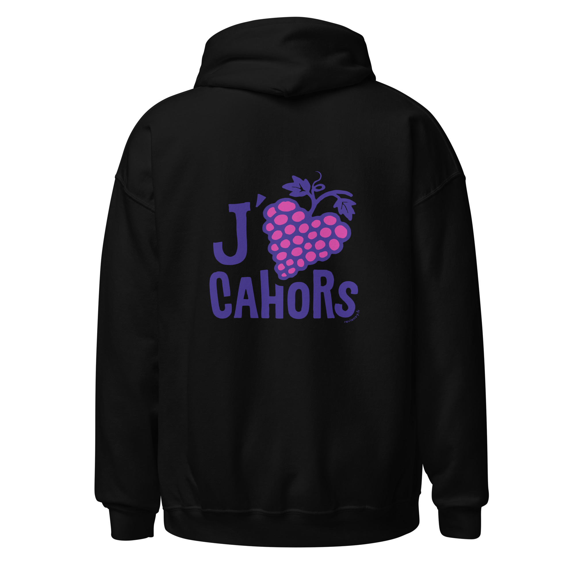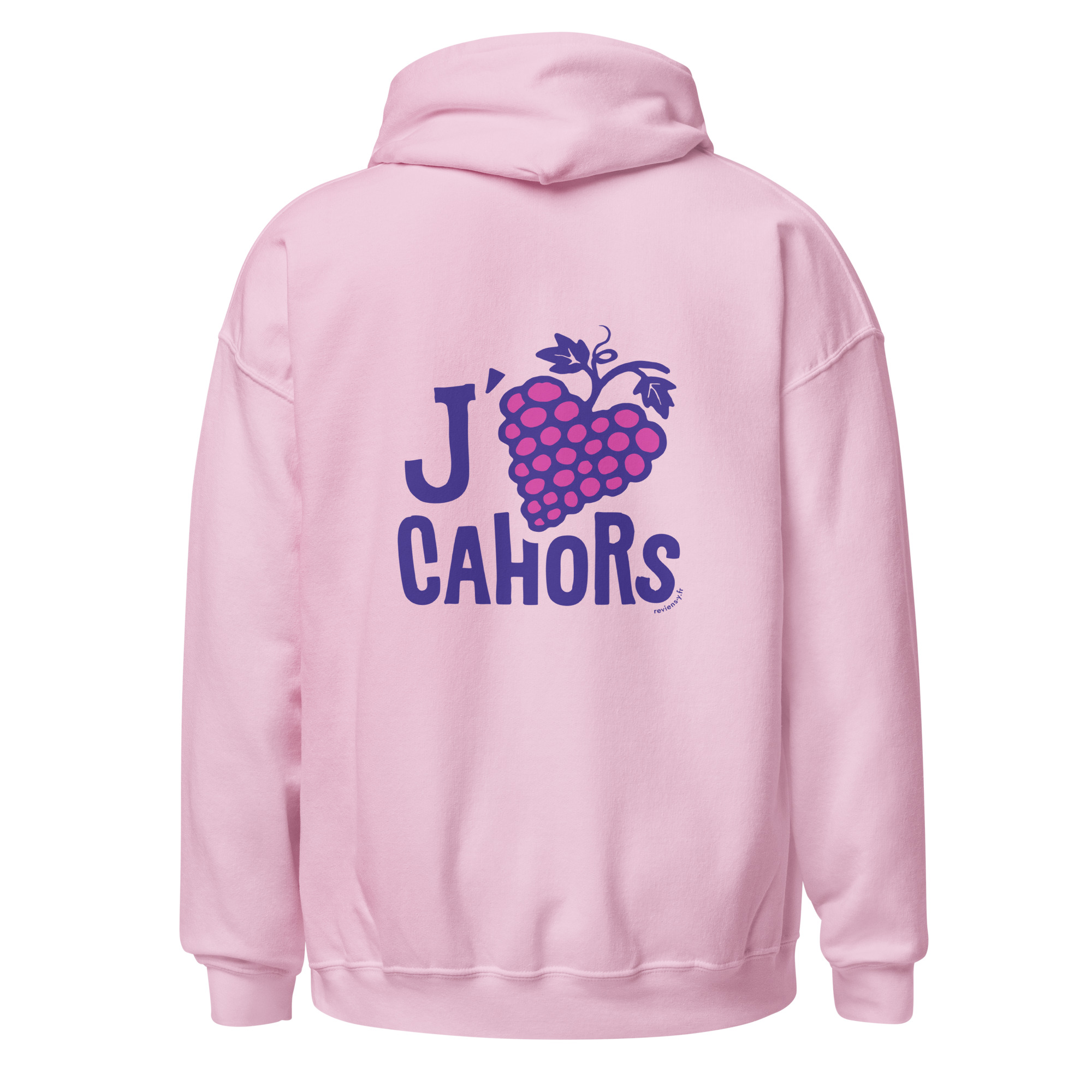 Ce visuel détourne la célèbre formule en remplaçant le cœur par une grappe de raisin en forme de cœur, clin d’œil au cépage Malbec qui fait la renommée des vins de Cahors. Les couleurs vives et les formes simples apportent un style moderne et convivial, idéal pour afficher son attachement à la ville et à son terroir viticole.