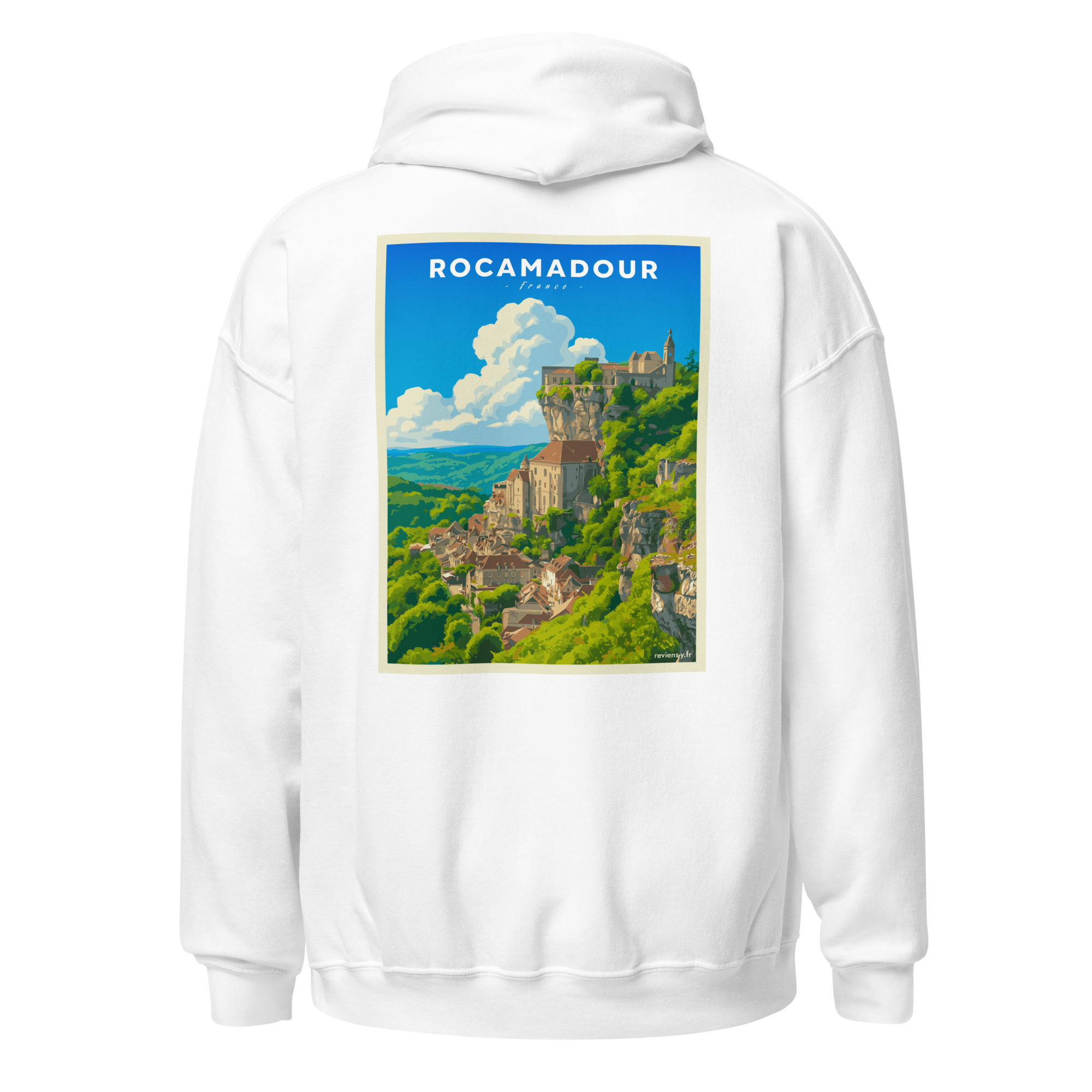 Ce visuel capture toute la majesté de Rocamadour, perché sur sa falaise surplombant la vallée de l’Alzou. Son style graphique, inspiré des affiches vintage, met en lumière l’un des plus beaux villages du Lot et d’Occitanie, entre nature préservée et patrimoine médiéval.