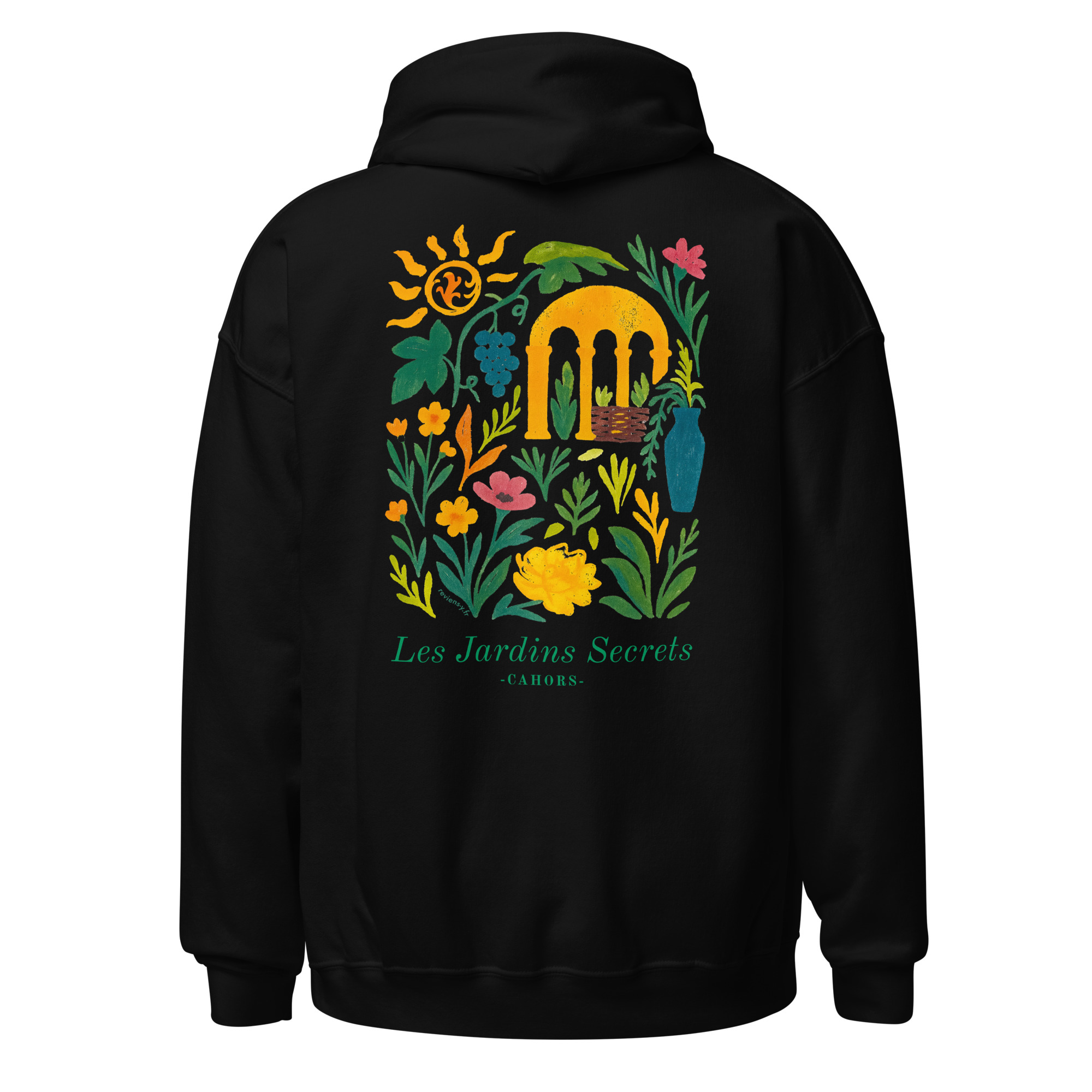 Ce visuel coloré rend hommage aux Jardins Secrets de Cahors, un parcours créé en 2002 qui regroupe plus de vingt jardins thématiques au cœur du centre historique. Signalés par des feuilles d’acanthe dans les rues, ils invitent à une promenade mêlant patrimoine médiéval et botanique.