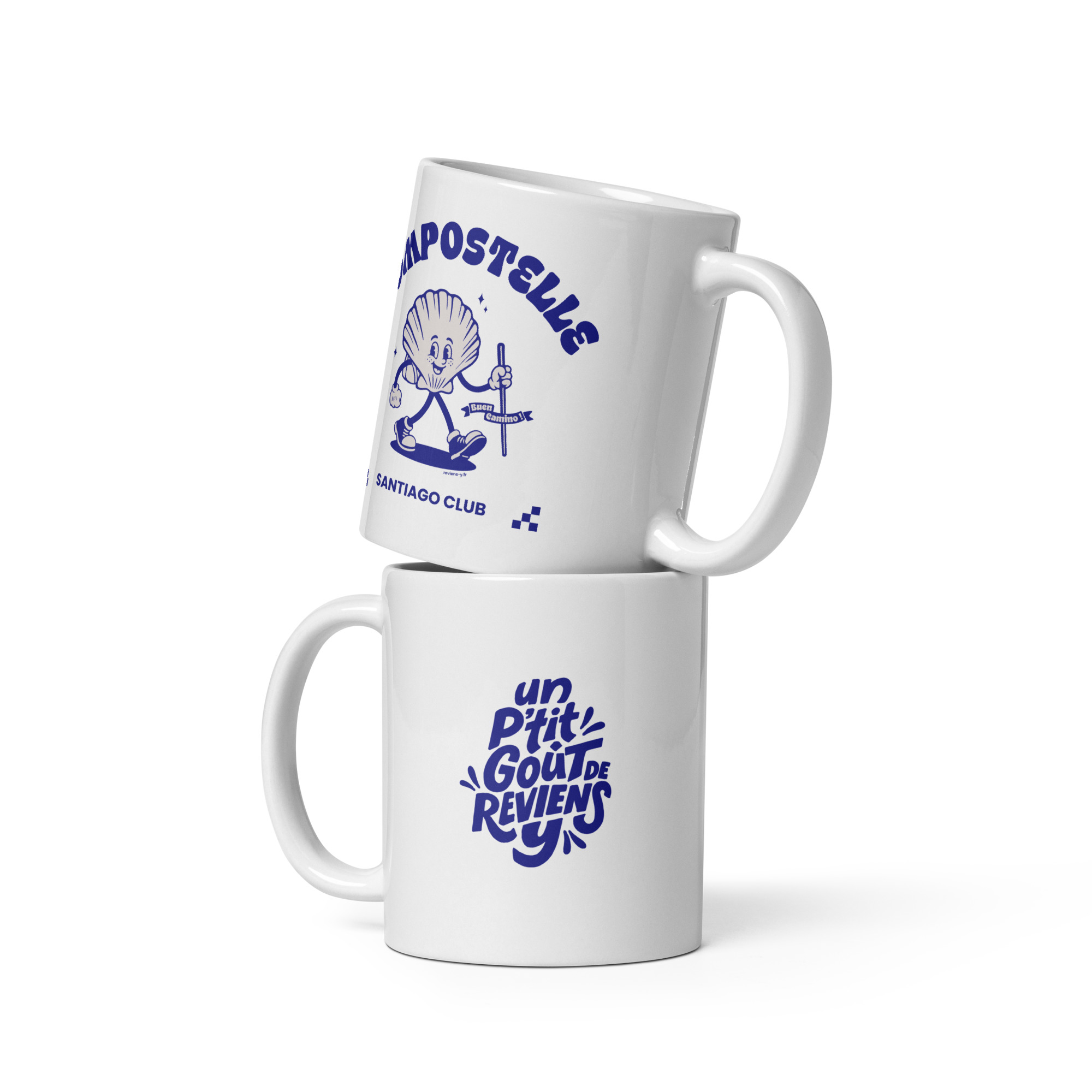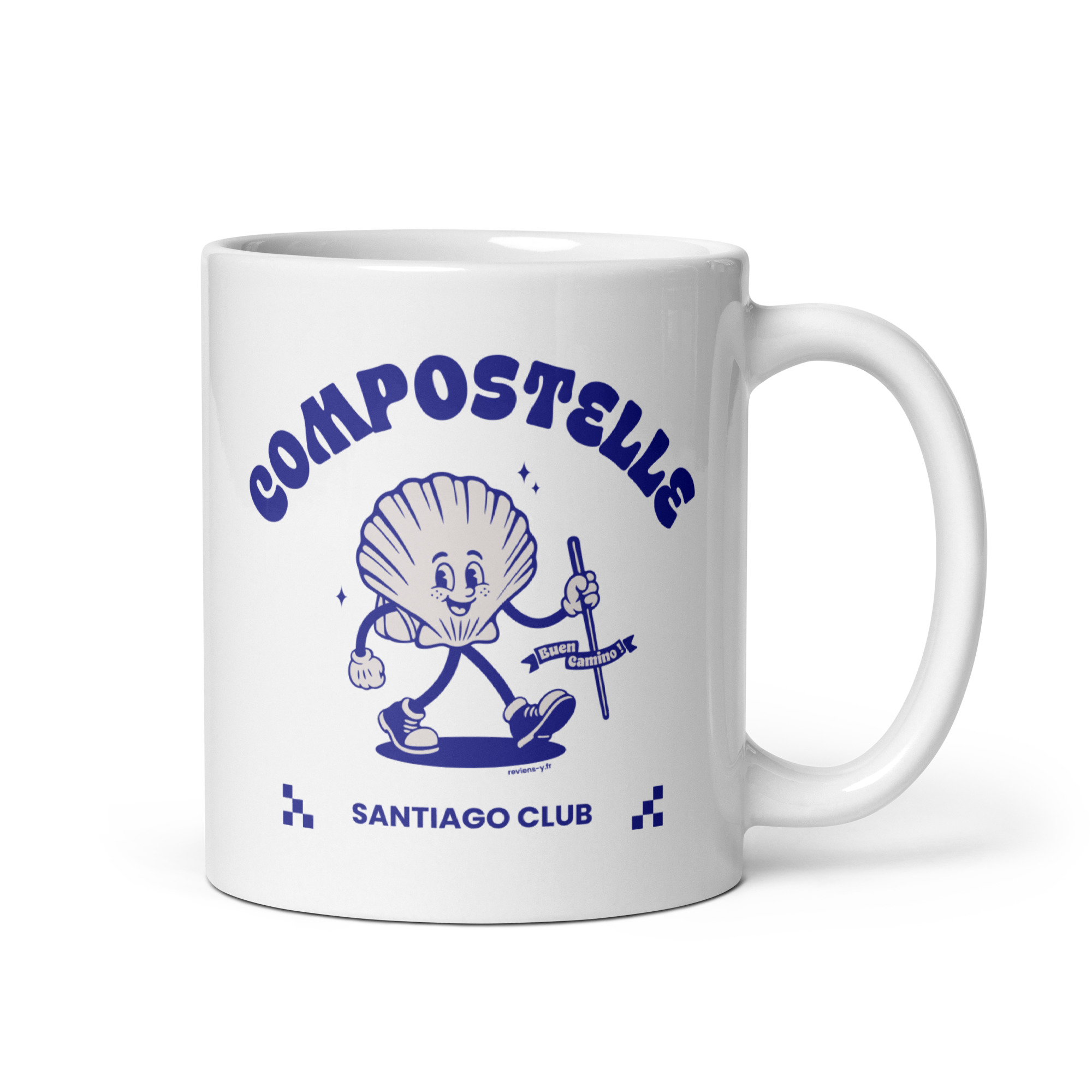 Craquez pour ce visuel rétro Compostelle ! Cette illustration vintage met en scène une adorable coquille Saint-Jacques mascotte en marche, arborant un style cartoon nostalgique. Avec son bâton de pèlerin et son joyeux message Buen Camino, ce design Santiago Club original célèbre le Chemin de Saint-Jacques avec une touche d’humour et d’authenticité.