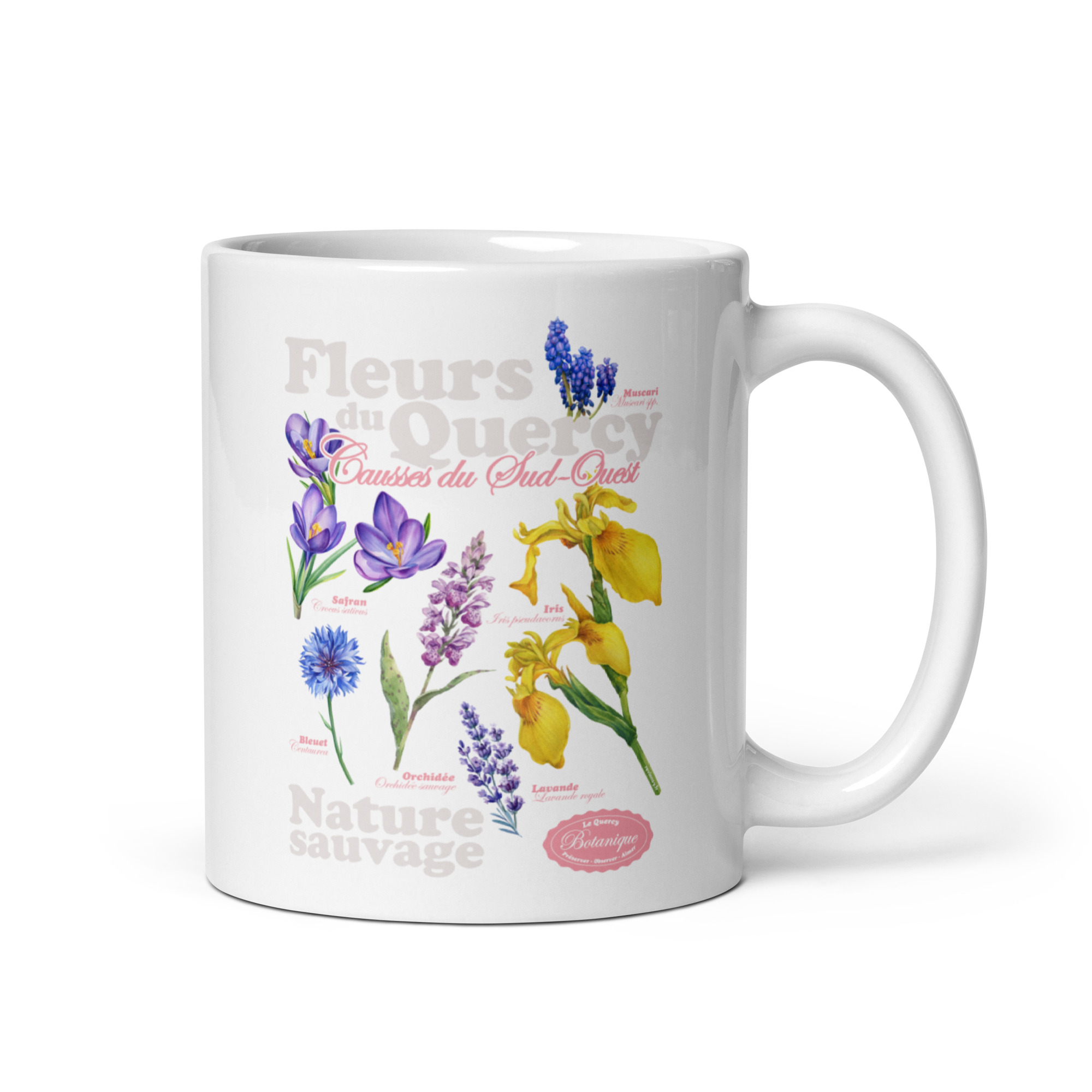 Illustration botanique des fleurs du Quercy, mettant en scène des espèces emblématiques des causses du Sud-Ouest. Chaque plante est représentée avec précision, entre réalisme et composition graphique, valorisant la richesse florale du Lot et son patrimoine naturel.