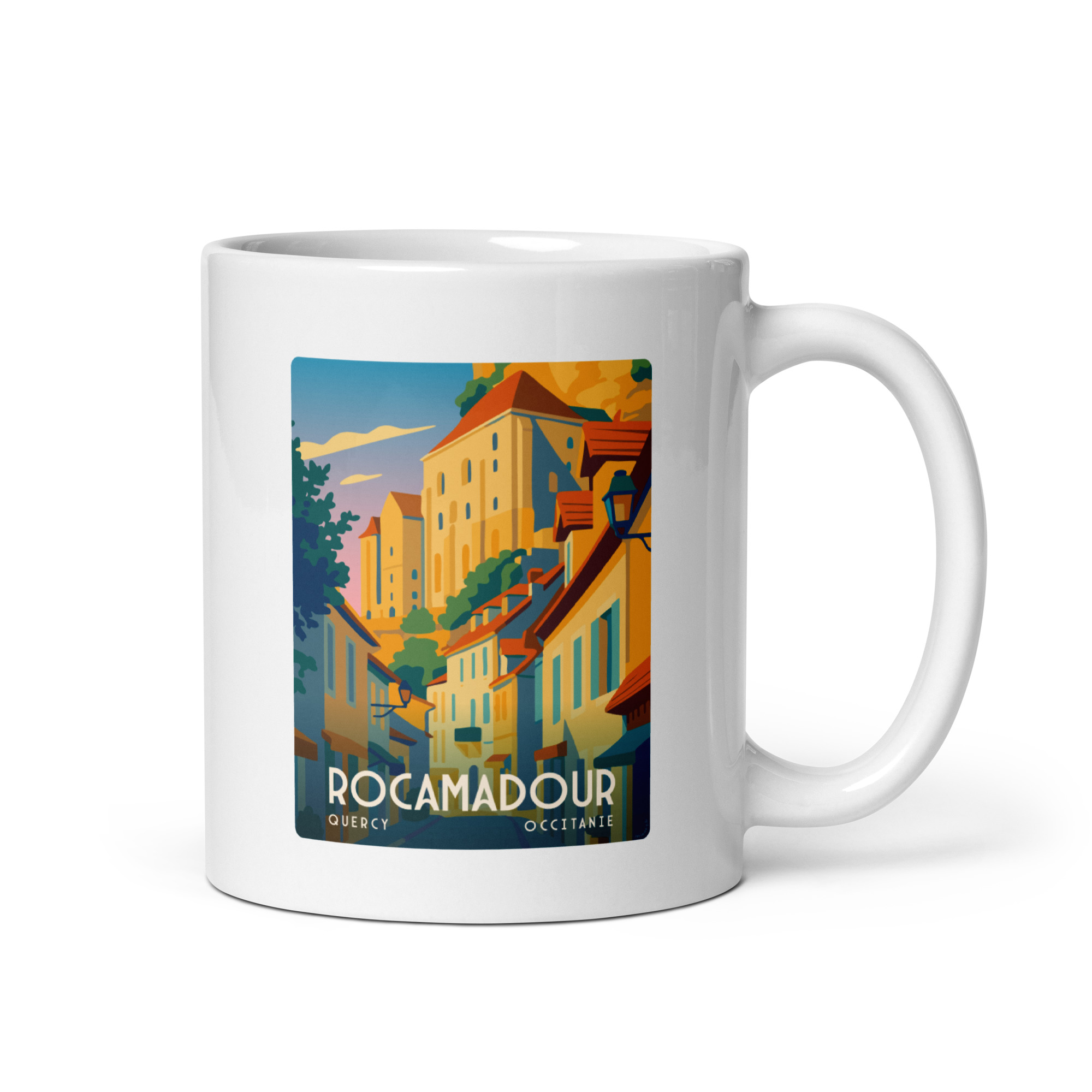 Ce visuel capture l’atmosphère ensoleillée des ruelles de Rocamadour, au cœur du Quercy. Les façades dorées et les toits ocres reflètent la chaleur du Sud-Ouest, tandis que la lumière du soir sublime les pierres typiques du Lot.