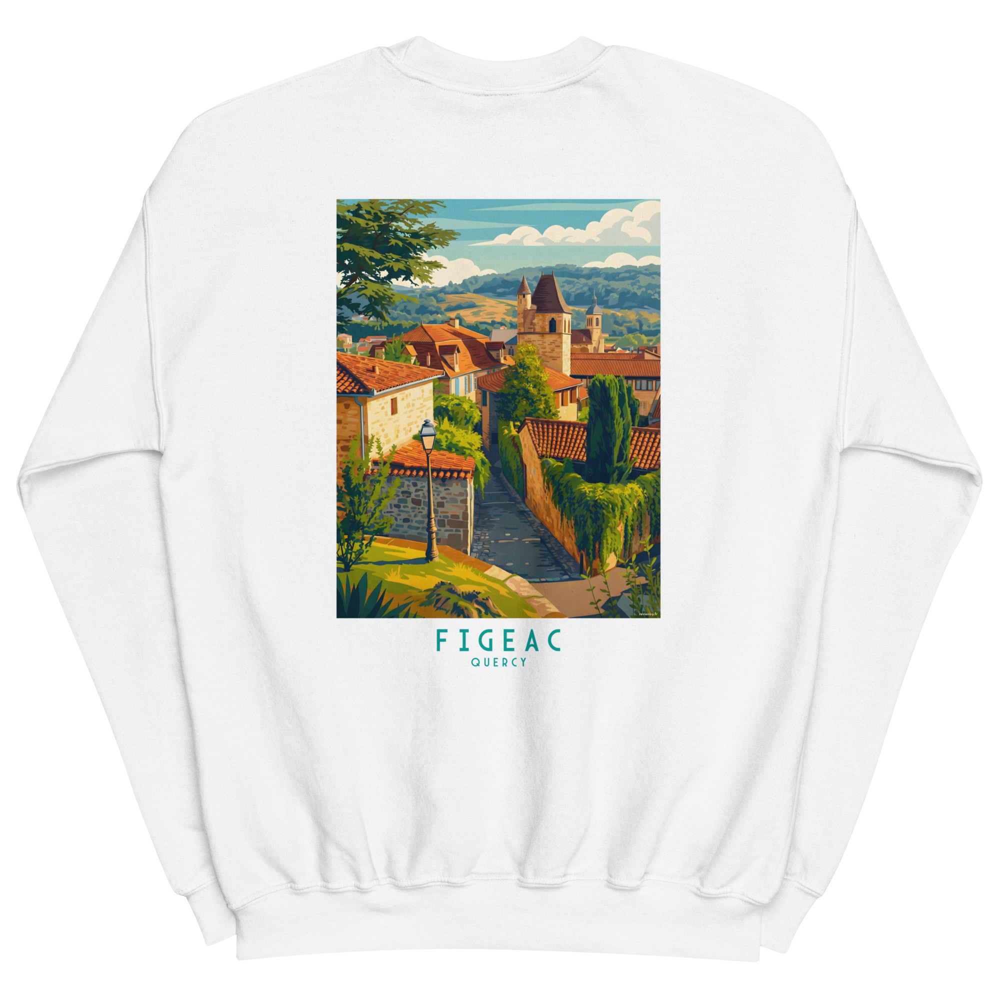 Explorez le charme de Figeac avec cette affiche illustrée. Ce design rétro, type Art Déco, capture une vue ensoleillée du village médiéval du Quercy. L’œuvre en art vectoriel met en lumière les toits en tuiles terre cuite, les ruelles étroites pavées et le clocher emblématique se découpant sur les collines verdoyantes. Le texte « FIGEAC » et « QUERCY » complète cette composition aux couleurs riches et saturées.