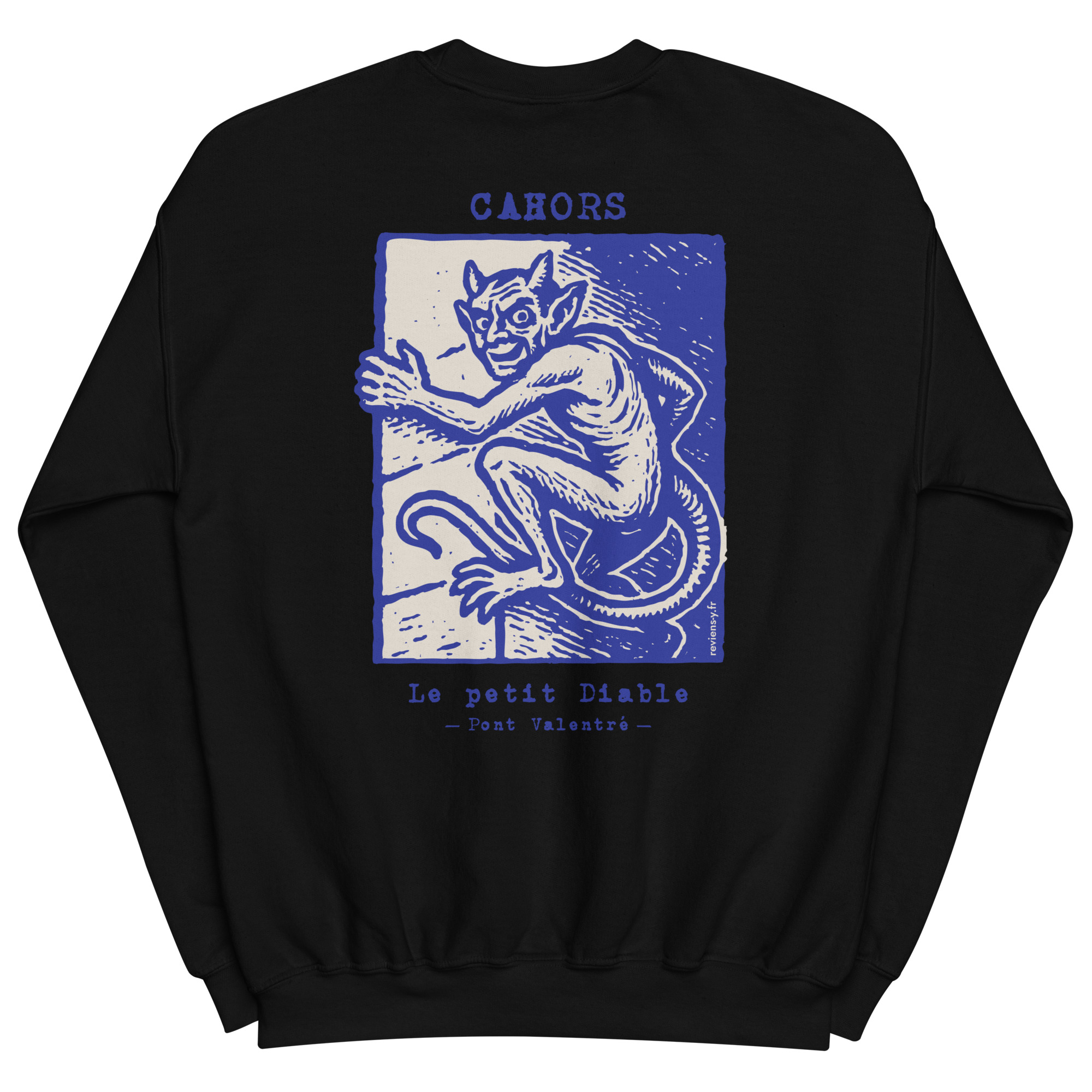 Inspiré de la légende du Pont Valentré, ce visuel met en scène le célèbre “Petit Diable” qui aurait participé, selon le mythe, à la construction du pont médiéval. Représenté dans un style graphique vintage et expressif, il rappelle l’un des récits les plus connus du patrimoine cadurcien.