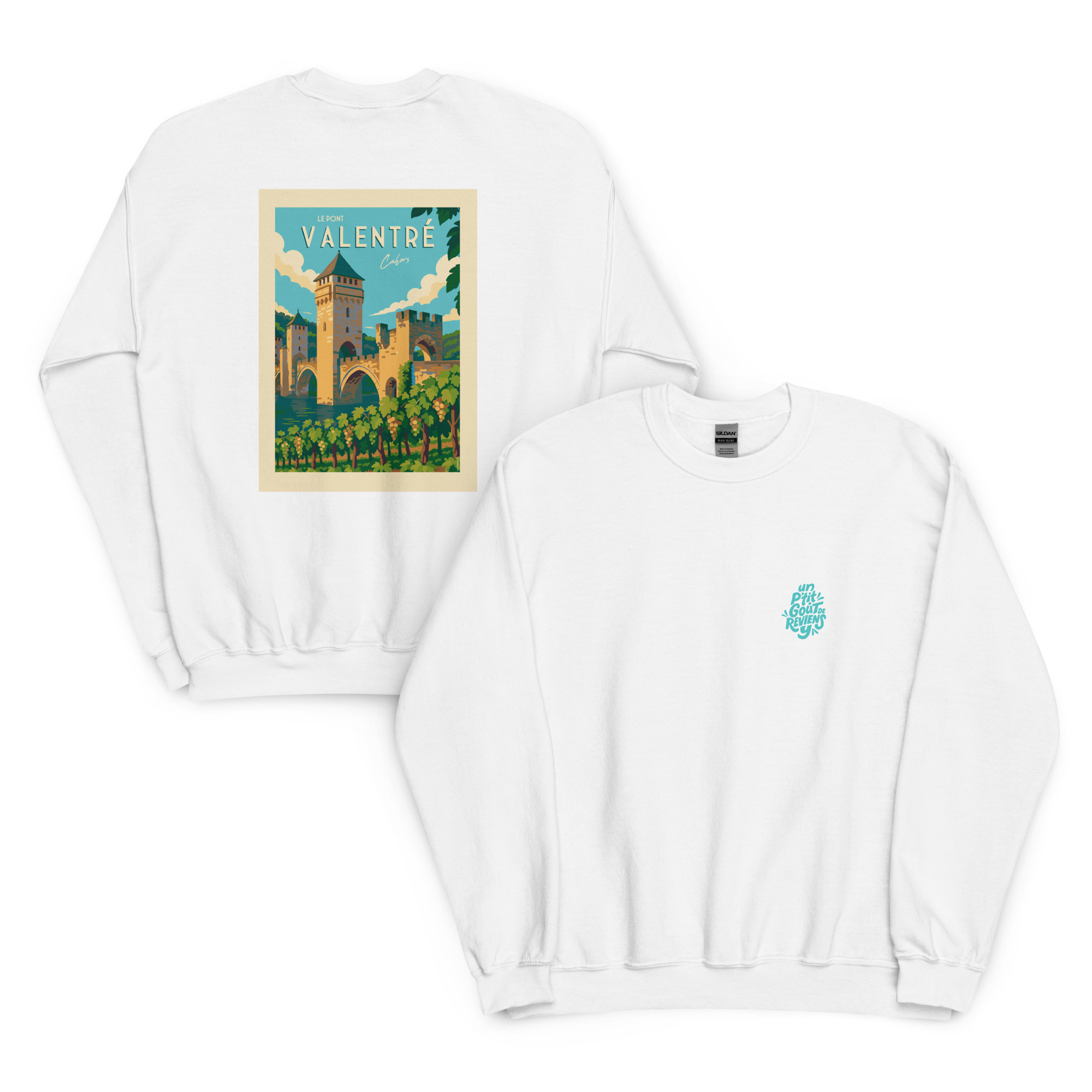 Symbole incontournable de Cahors, le Pont Valentré se dresse ici dans une illustration colorée et lumineuse. Ses tours médiévales et ses arches de pierre se reflètent dans le Lot, entourées de vignobles qui rappellent la richesse viticole de la région.