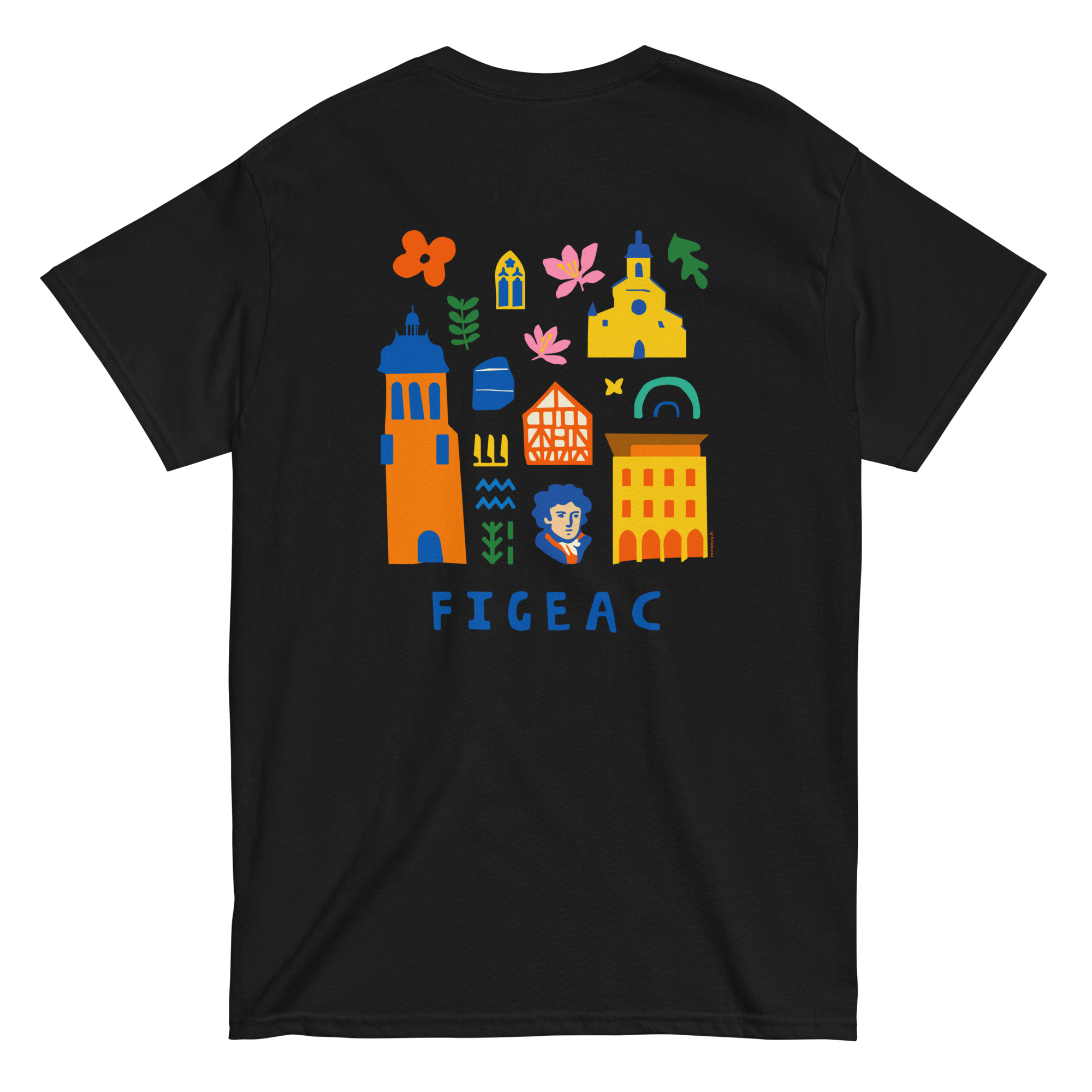 Explorez Figeac avec cette affiche au style folk art joyeux et moderne. Une composition originale en collage d’icônes colorées célébrant le patrimoine unique du Quercy : fleur de safran, feuille de chêne du causse, les incontournables Eglise Saint Sauveur et Église Notre-Dame-du-Puy, le Musée Champollion, la Pierre de Rosette, des hiéroglyphes et les maisons à colombages. Design aux formes simples et couleurs vives. Texte ‘FIGEAC’ en bas. Souvenir authentique.