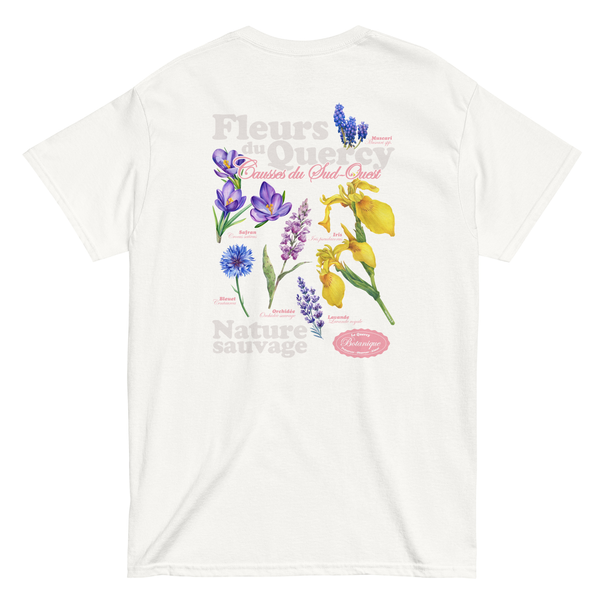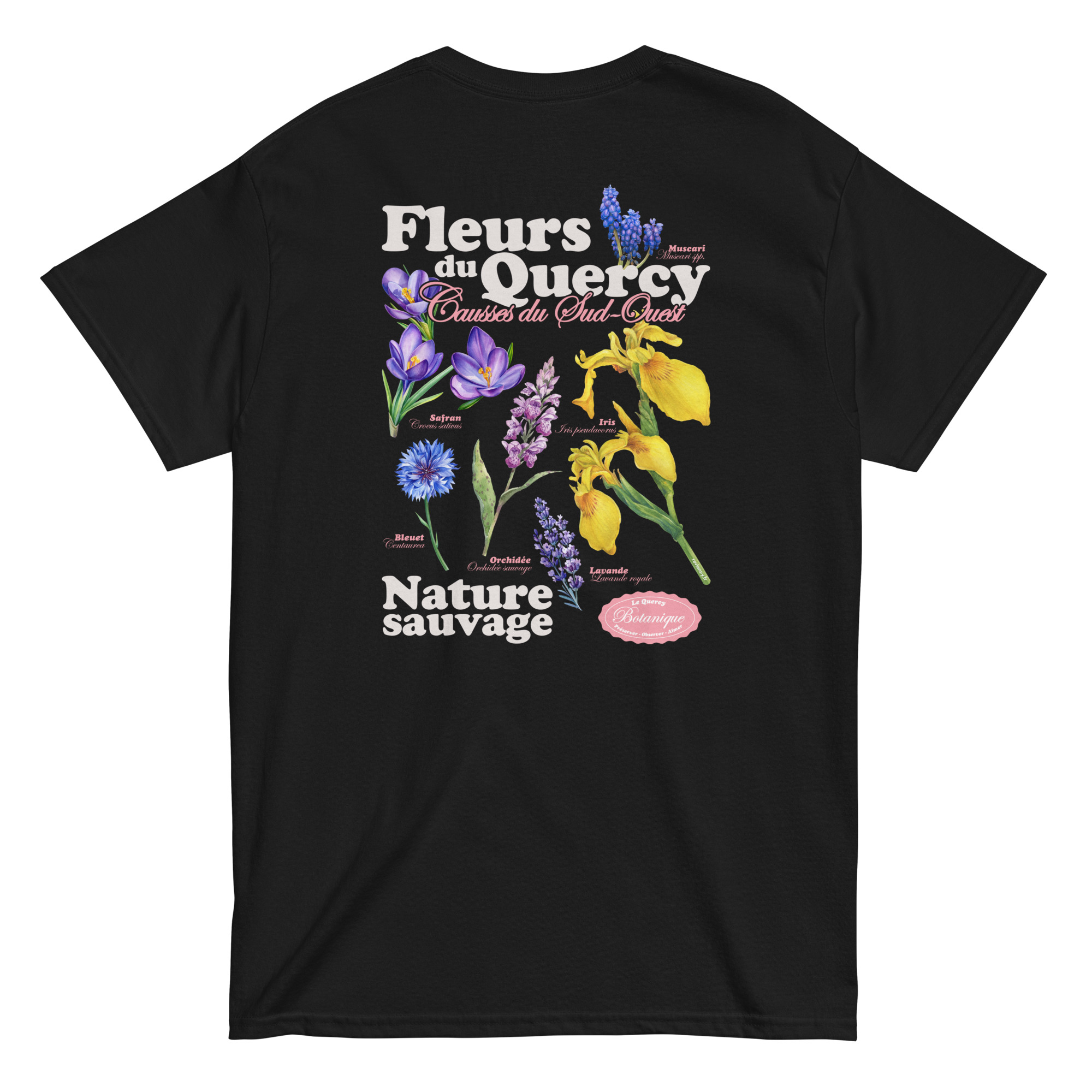 Illustration botanique des fleurs du Quercy, mettant en scène des espèces emblématiques des causses du Sud-Ouest. Chaque plante est représentée avec précision, entre réalisme et composition graphique, valorisant la richesse florale du Lot et son patrimoine naturel.