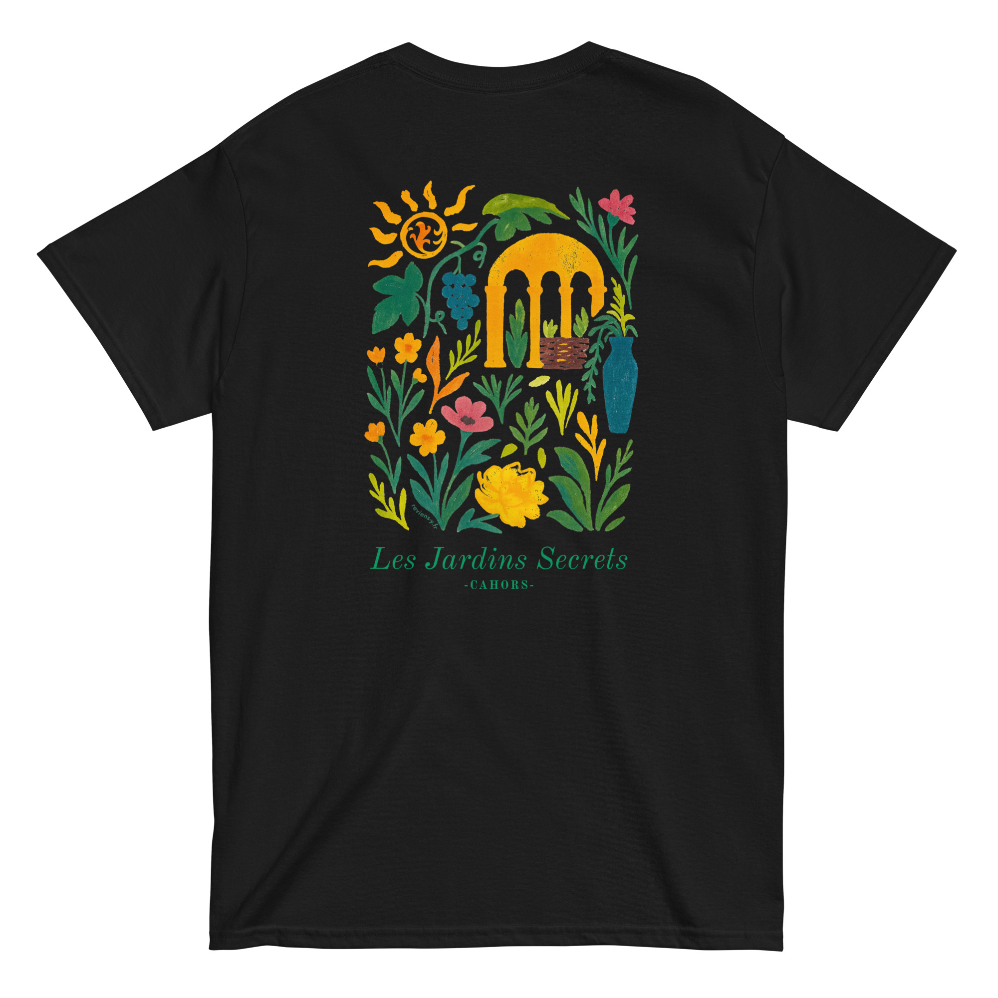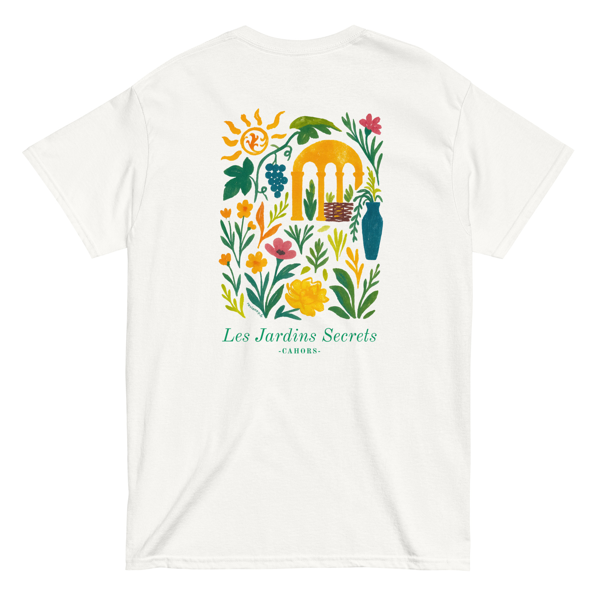 Ce visuel coloré rend hommage aux Jardins Secrets de Cahors, un parcours créé en 2002 qui regroupe plus de vingt jardins thématiques au cœur du centre historique. Signalés par des feuilles d’acanthe dans les rues, ils invitent à une promenade mêlant patrimoine médiéval et botanique.