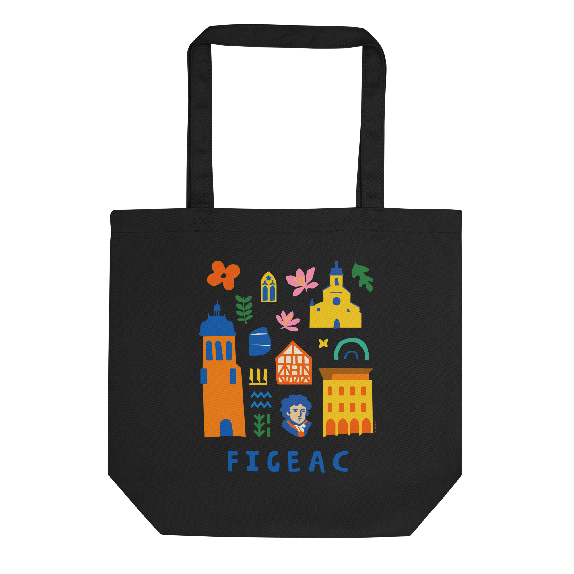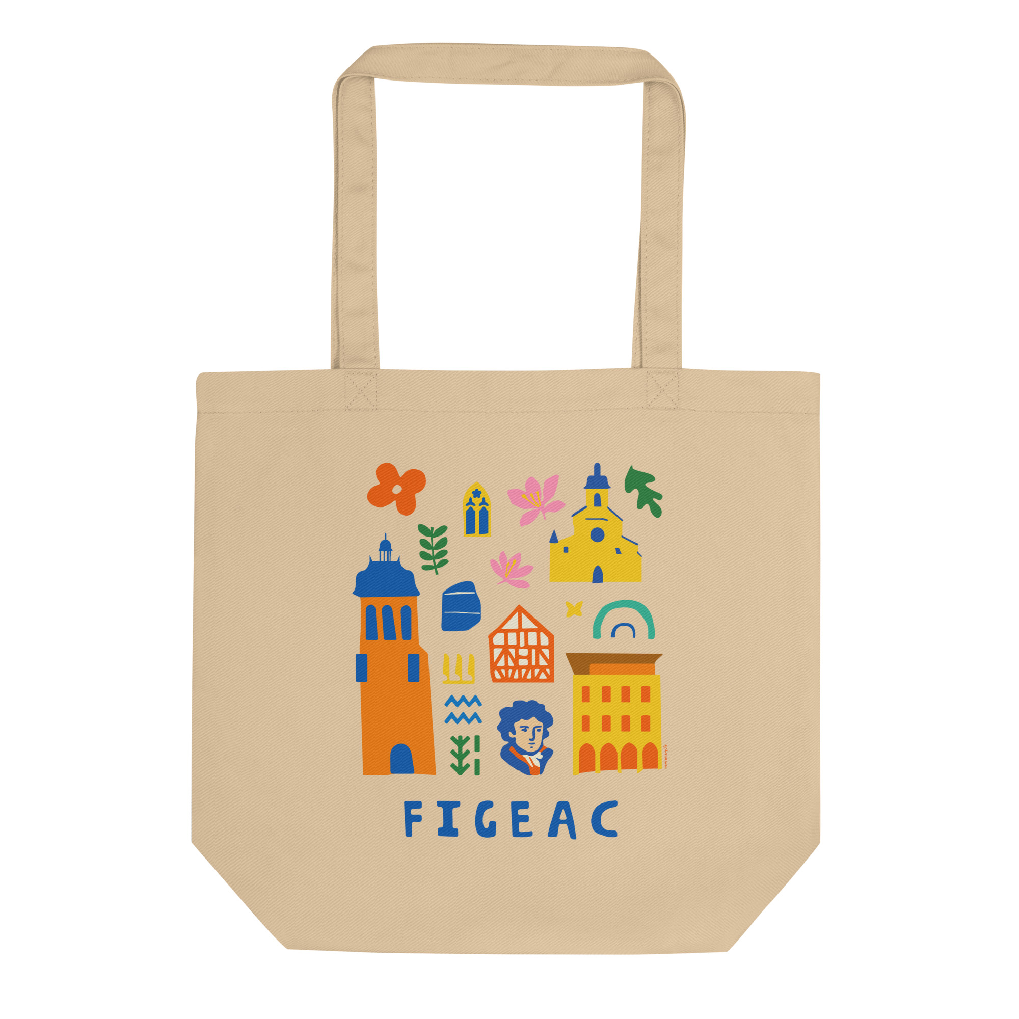 Explorez Figeac avec cette affiche au style folk art joyeux et moderne. Une composition originale en collage d’icônes colorées célébrant le patrimoine unique du Quercy : fleur de safran, feuille de chêne du causse, les incontournables Eglise Saint Sauveur et Église Notre-Dame-du-Puy, le Musée Champollion, la Pierre de Rosette, des hiéroglyphes et les maisons à colombages. Design aux formes simples et couleurs vives. Texte ‘FIGEAC’ en bas. Souvenir authentique.