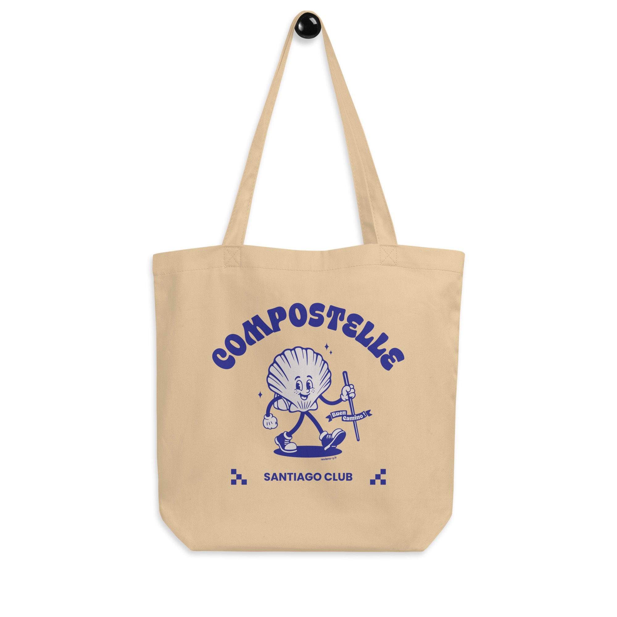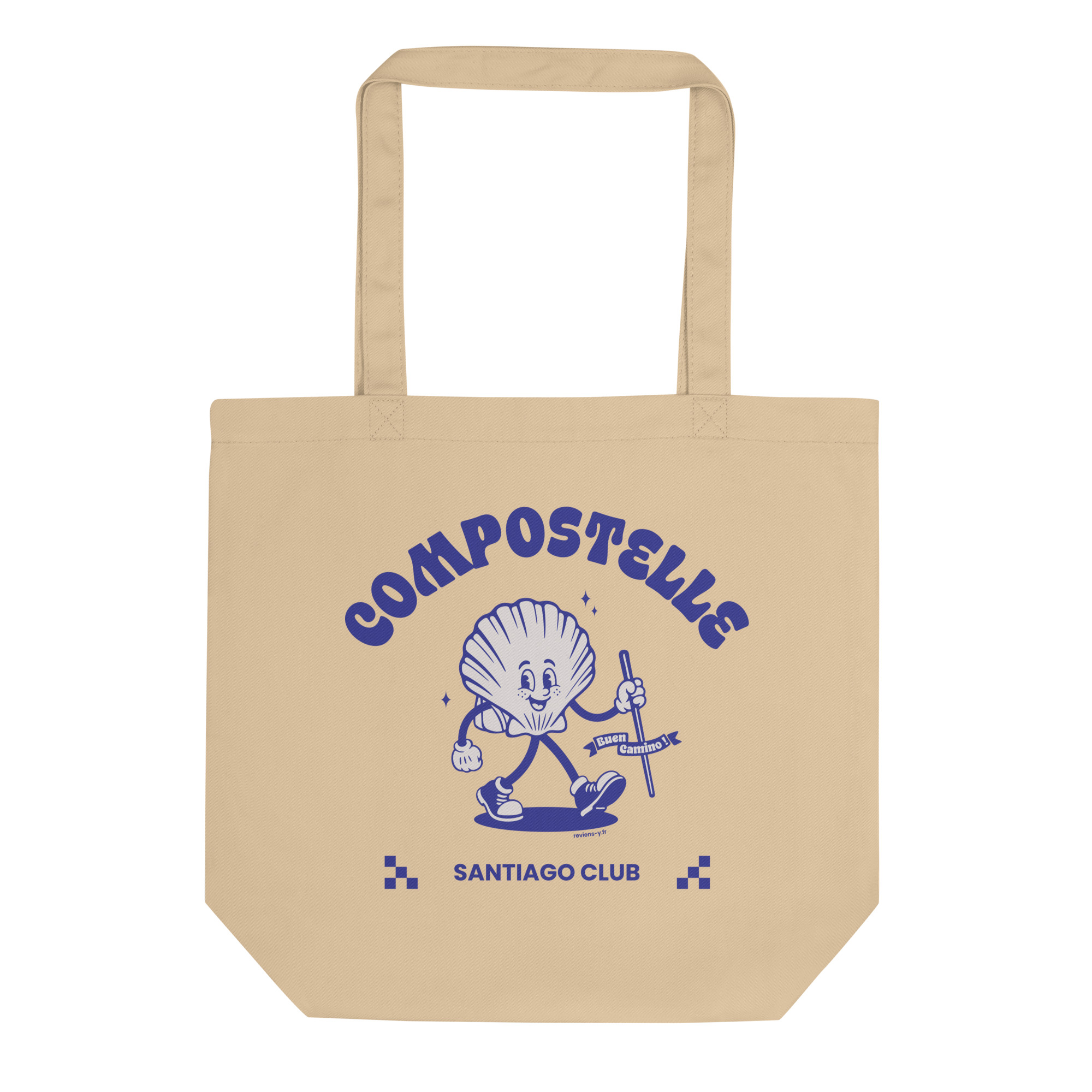 Craquez pour ce visuel rétro Compostelle ! Cette illustration vintage met en scène une adorable coquille Saint-Jacques mascotte en marche, arborant un style cartoon nostalgique. Avec son bâton de pèlerin et son joyeux message Buen Camino, ce design Santiago Club original célèbre le Chemin de Saint-Jacques avec une touche d’humour et d’authenticité.