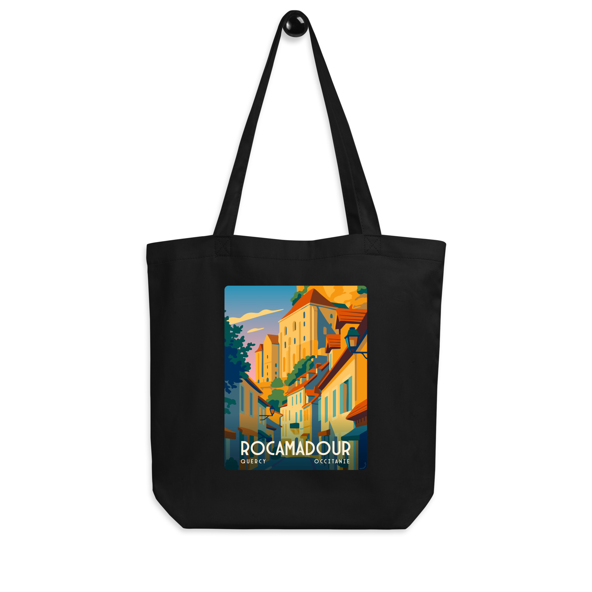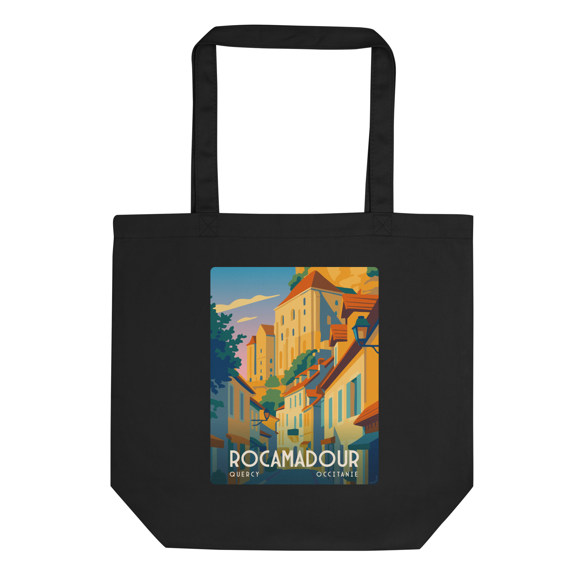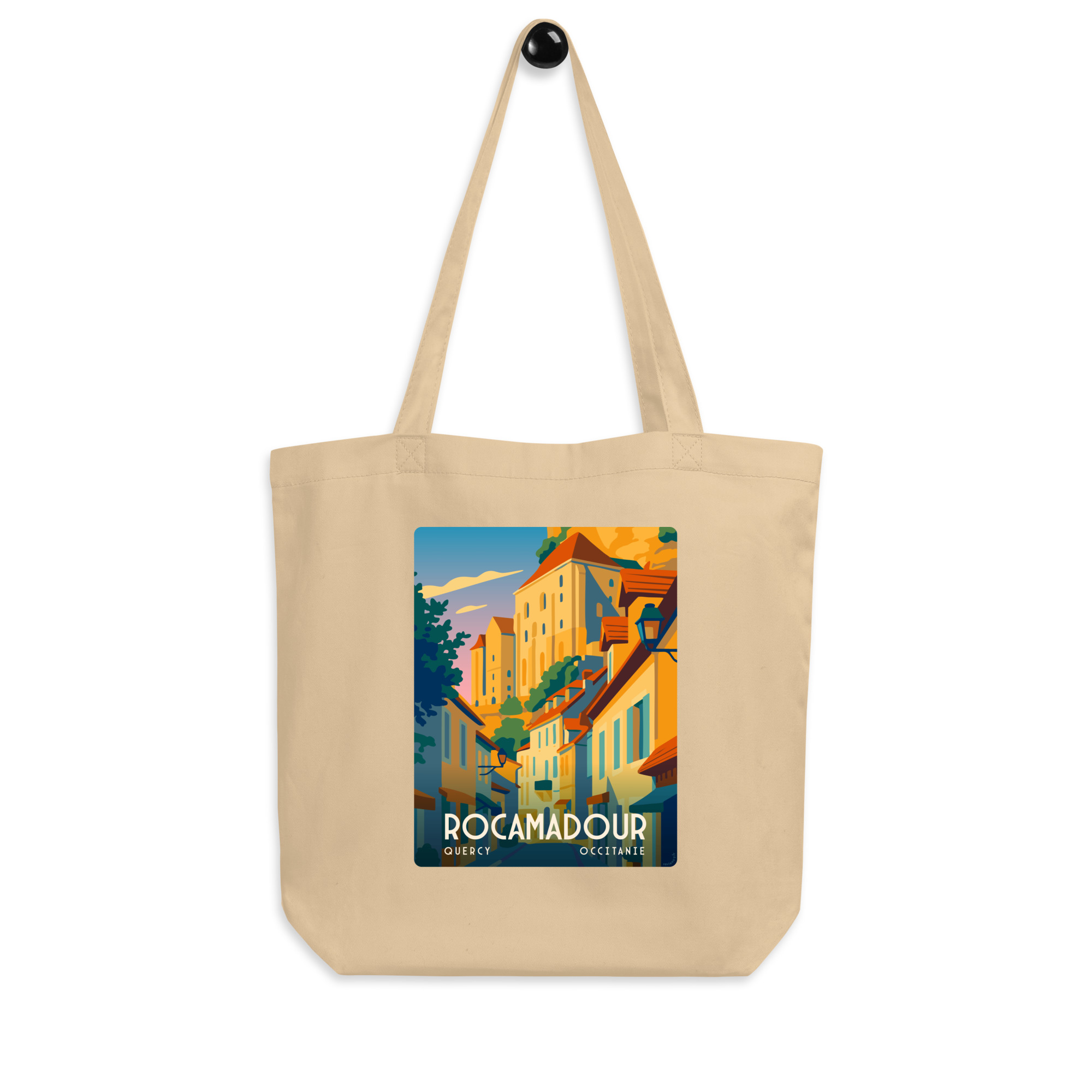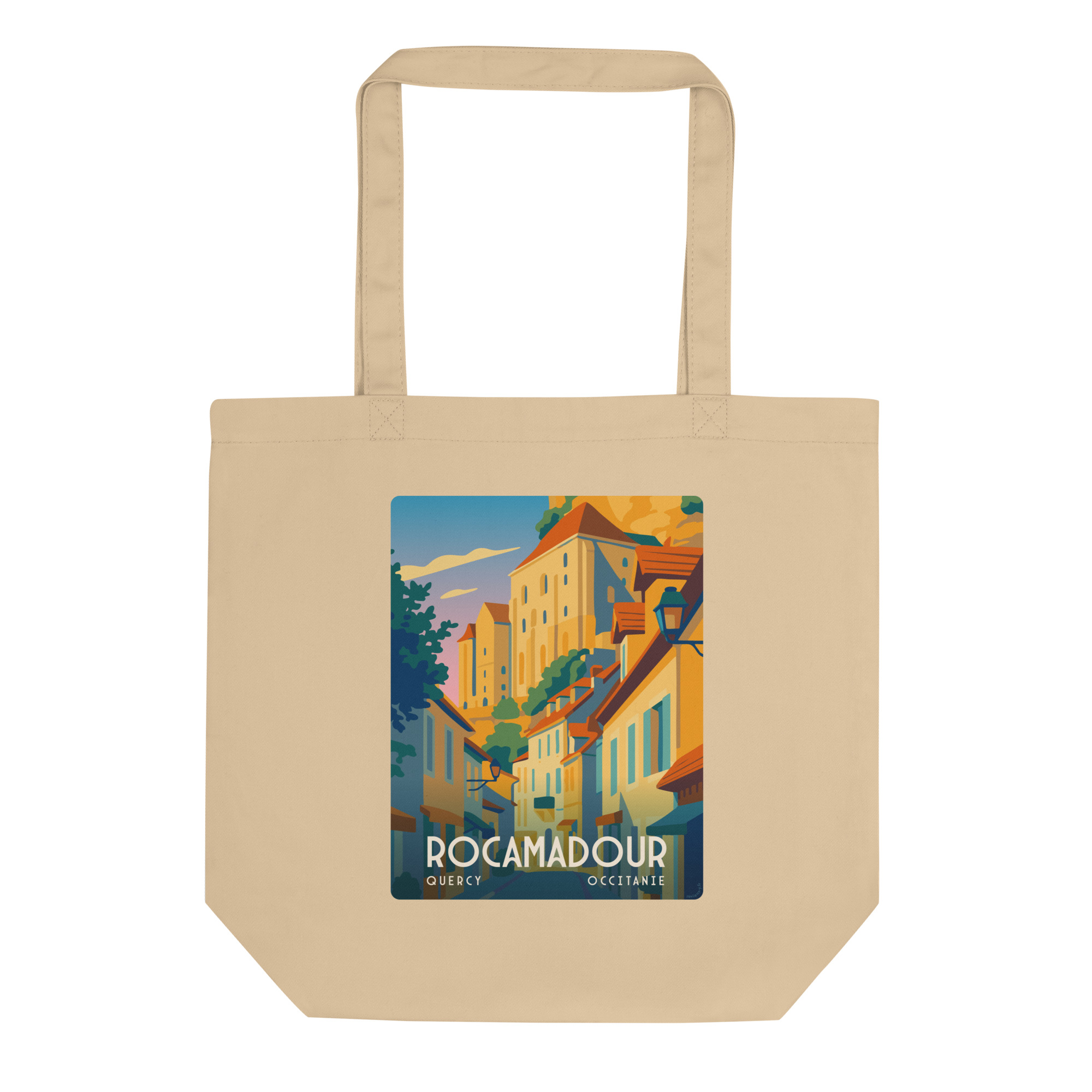 Ce visuel capture l’atmosphère ensoleillée des ruelles de Rocamadour, au cœur du Quercy. Les façades dorées et les toits ocres reflètent la chaleur du Sud-Ouest, tandis que la lumière du soir sublime les pierres typiques du Lot.